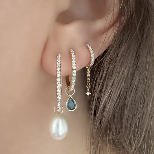 White Gold & Blue Topaz 3 Stone Flat Back Piercing Earring