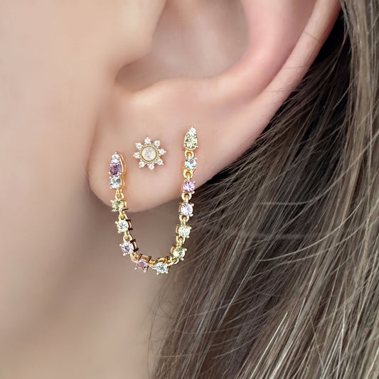 Multicolored Double Piercing Tennis Earring