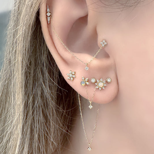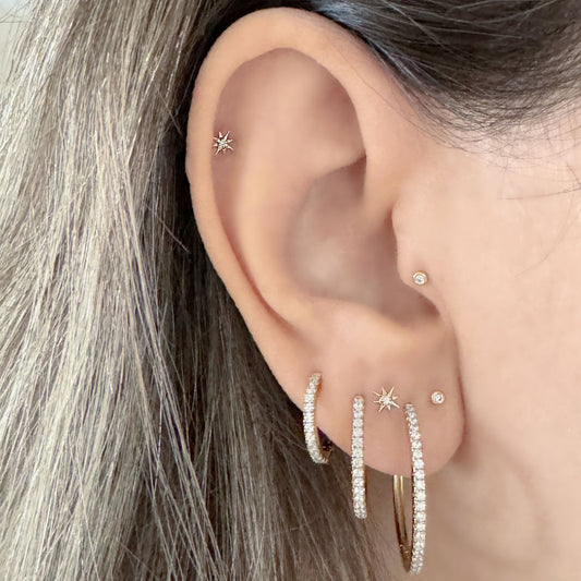We've reimagined lab grown diamonds as flat back earrings, and we’re not holding back! Designed for helix, tragus, and conch ear piercings, these internally threaded, screw back studs offer all the comfort and security of a flat back—paired with the brilliance of larger, classically set lab diamonds. Stack them high, wear them every day, and let your jewelry do the flexing.