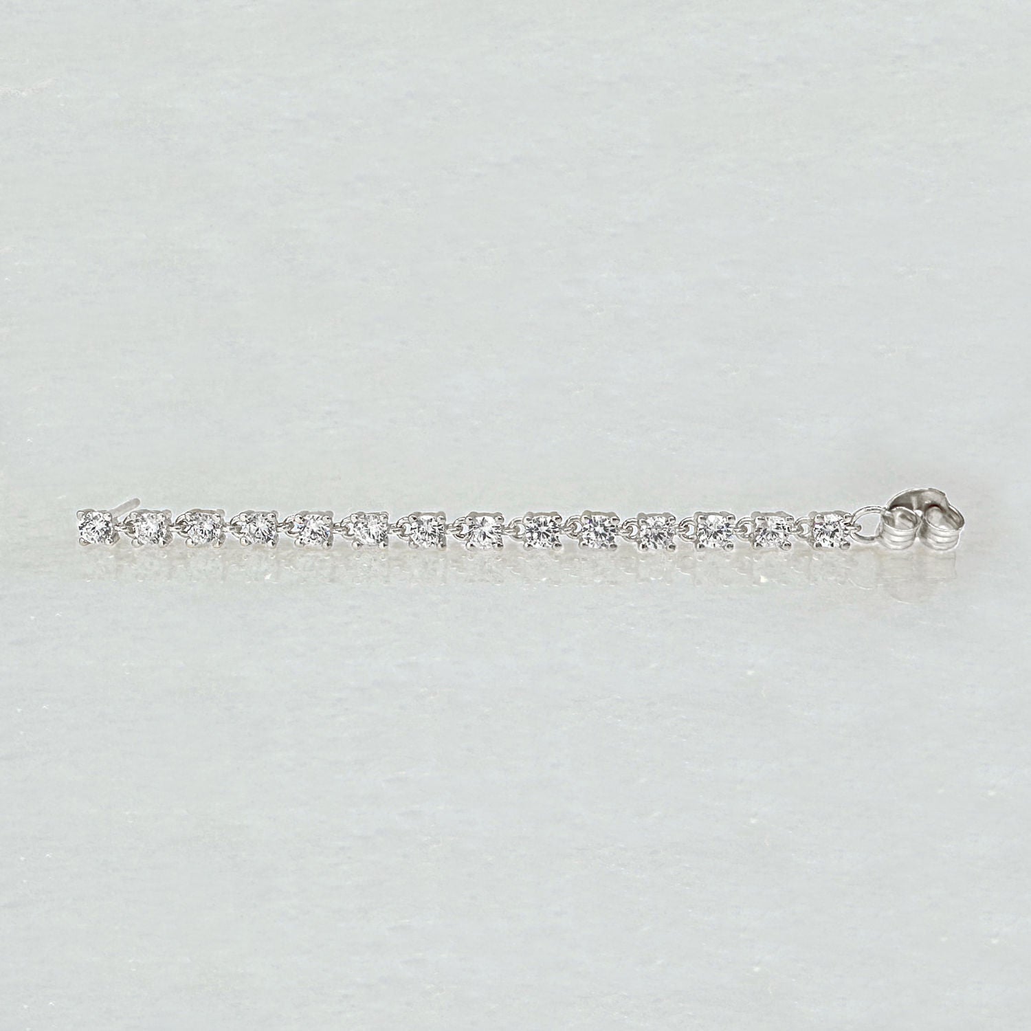 Our Front to Back Tennis Earring has an unbeatable look with lasting charm! Show off your style with this stunning chain hoop, featuring sparkling cubic zirconia gems set in 18k white gold-plated sterling silver - perfect for your lobes or helix piercing!