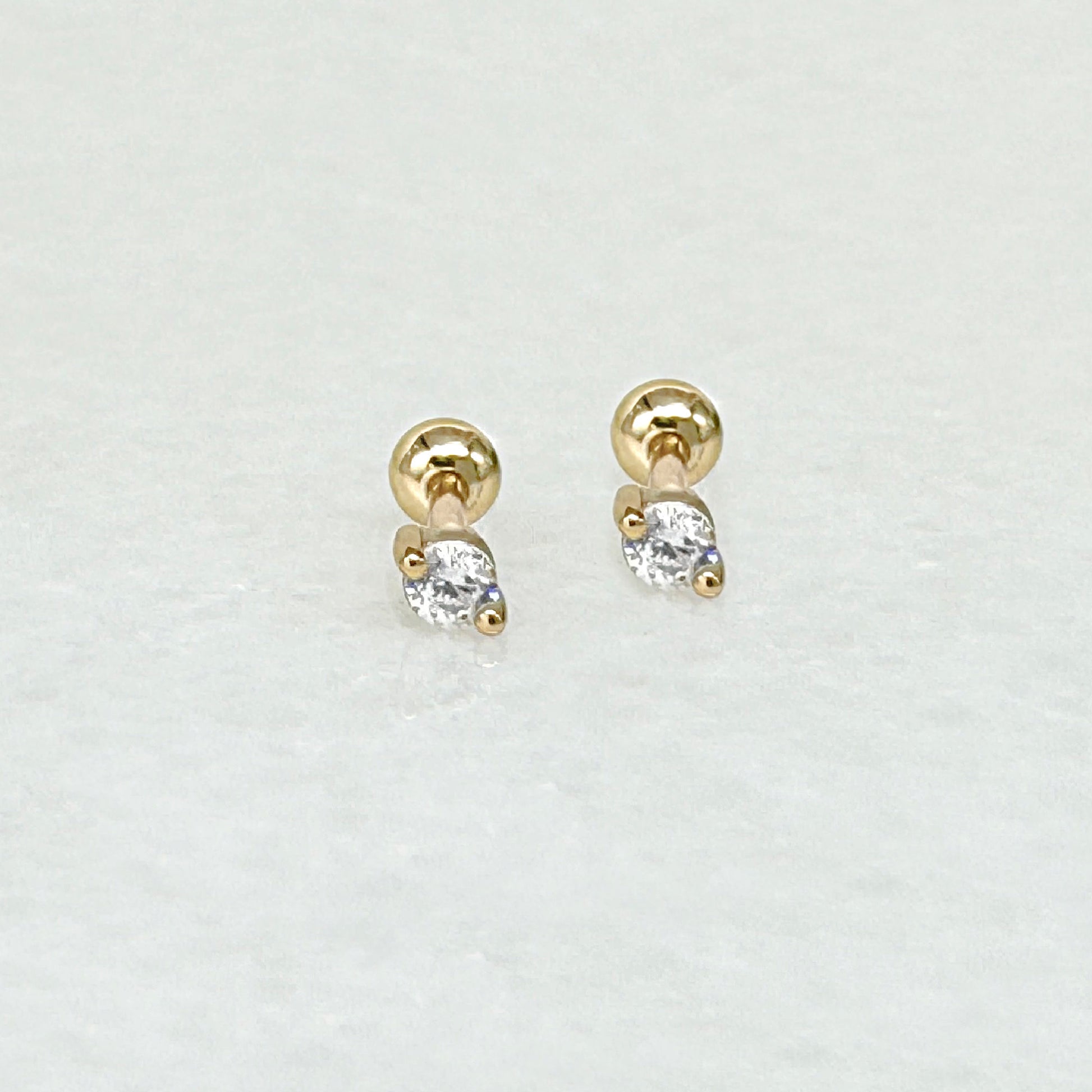 Introducing our timeless Gemstone Stud Screw Back Cartilage Earring! With a dazzling prong set cubic zirconia and a trusty ball-style screw back, this 14k gold plated sterling silver beauty is perfect for your lobe, helix, or conch. Add a touch of sophistication to any outfit with this eye-catching stud!