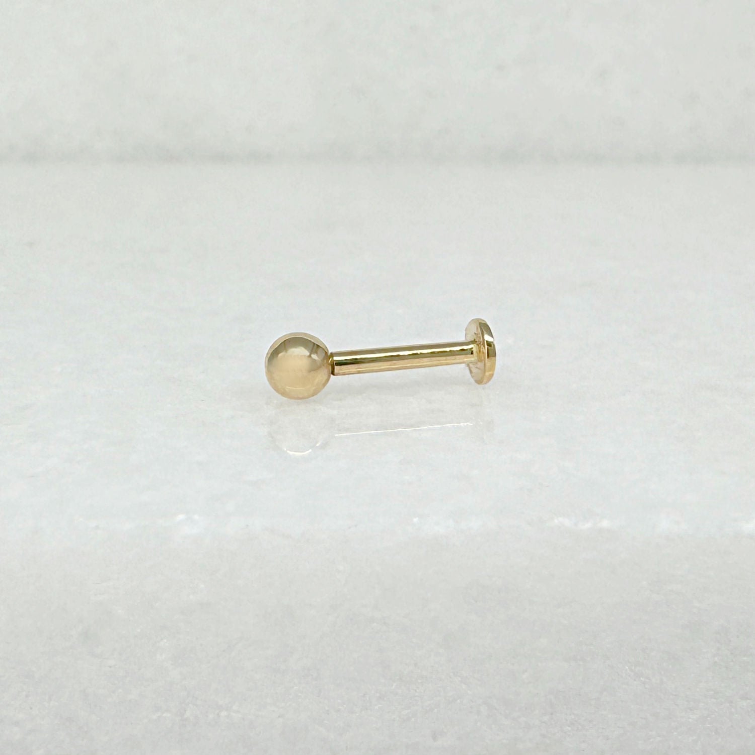 Our versatile Gold Ball Flat Back Earring is perfect for everyday wear and adds a touch of elegance to your helix, tragus, conch, or lobe. Choose from 6.5mm, 5mm, or 8mm flat back posts in recycled, nickel-free, and hypoallergenic 14k solid gold. Upgrade your style with this wear-everywhere accessory!