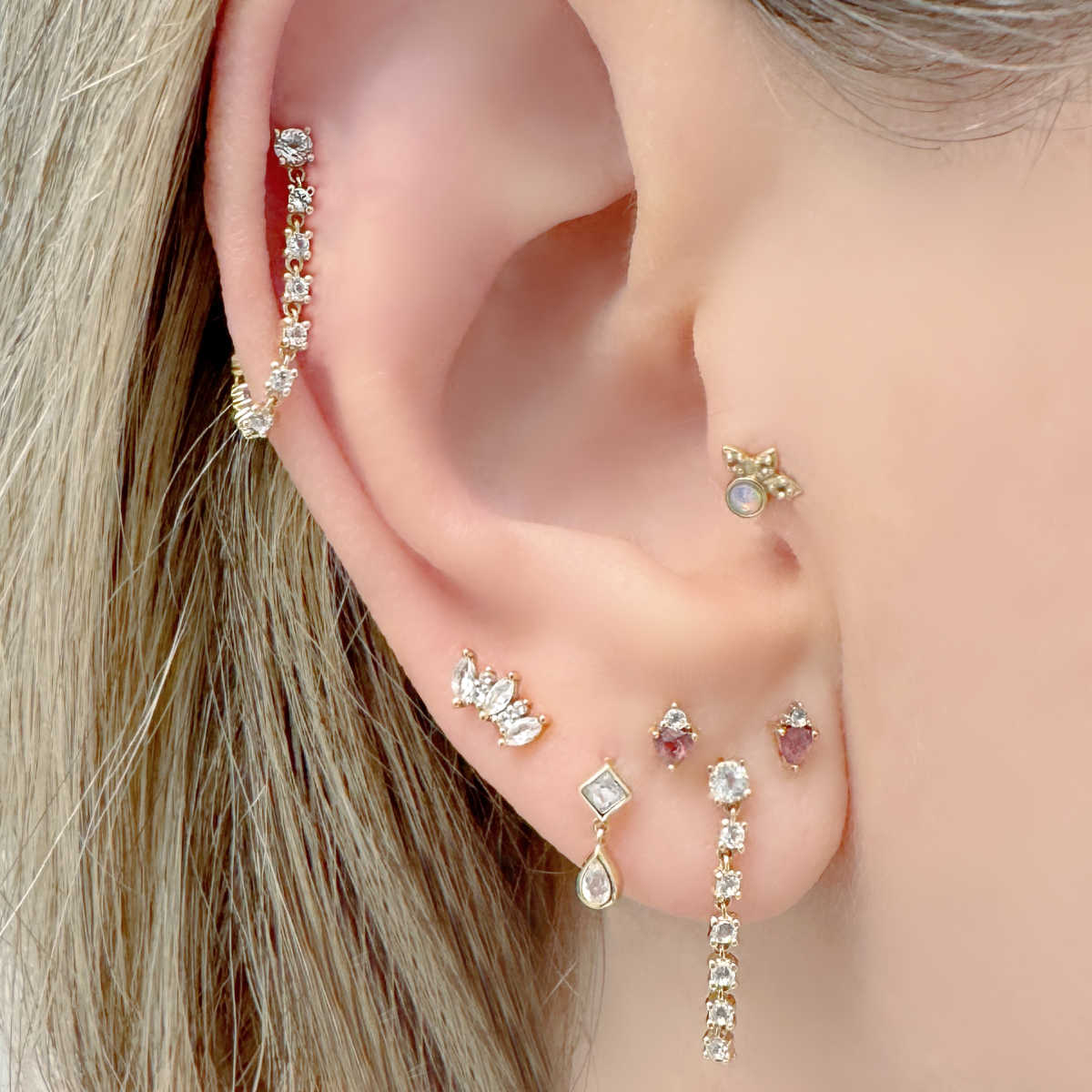 Climb to style heights with our Marquise & Round Cartilage Climber Stud Earrings! Crafted in 14k gold, these ear climbers feature dazzling marquise and round cut white sapphire gemstones, and make a bold, beautiful statement for your helix, conch, or lobe!