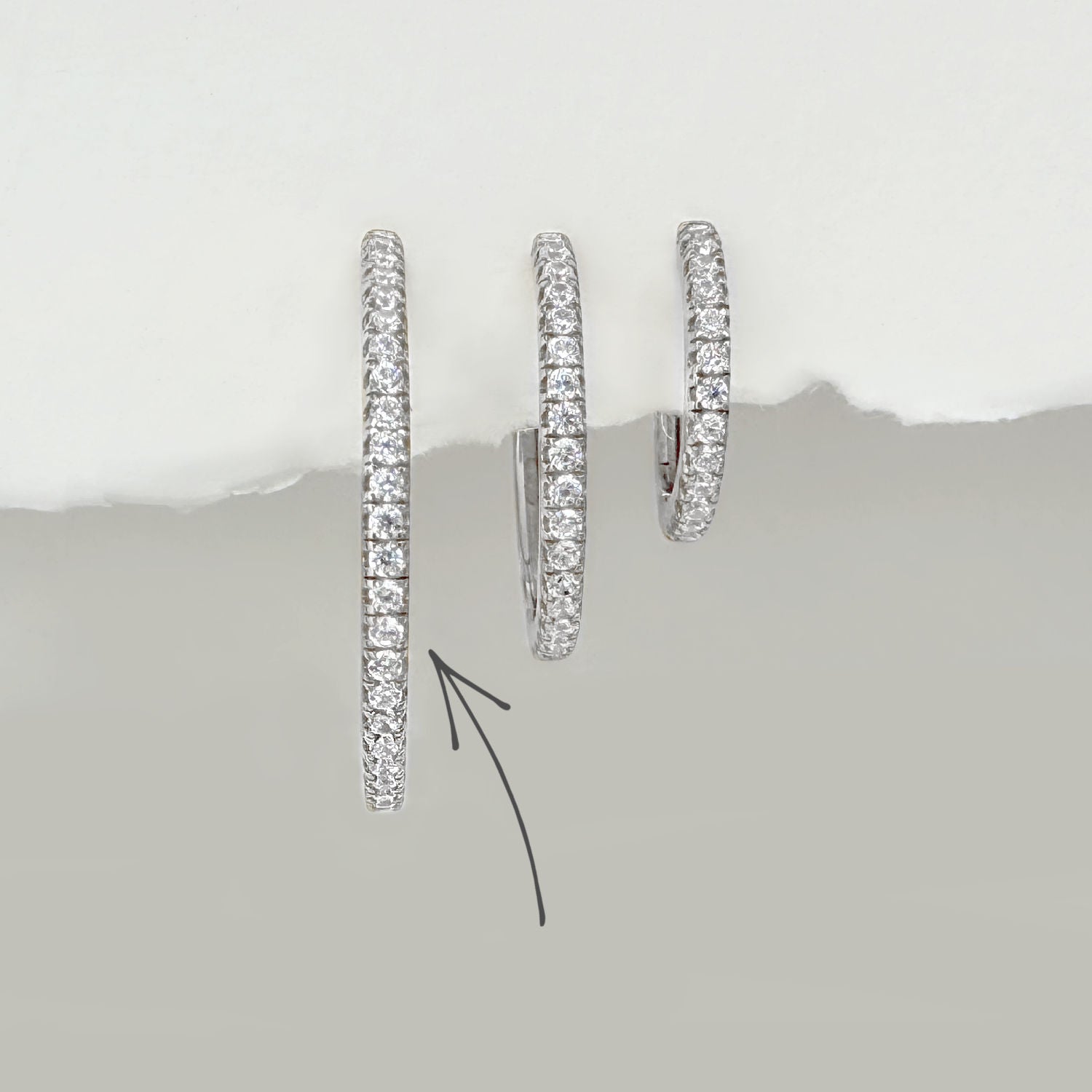 Enjoy the timeless elegance of our Silver Eternity Hoop Earrings. Crafted in sterling silver and featuring sparkling gemstones, the secure hinged clicker closure makes them easy and comfortable to wear!