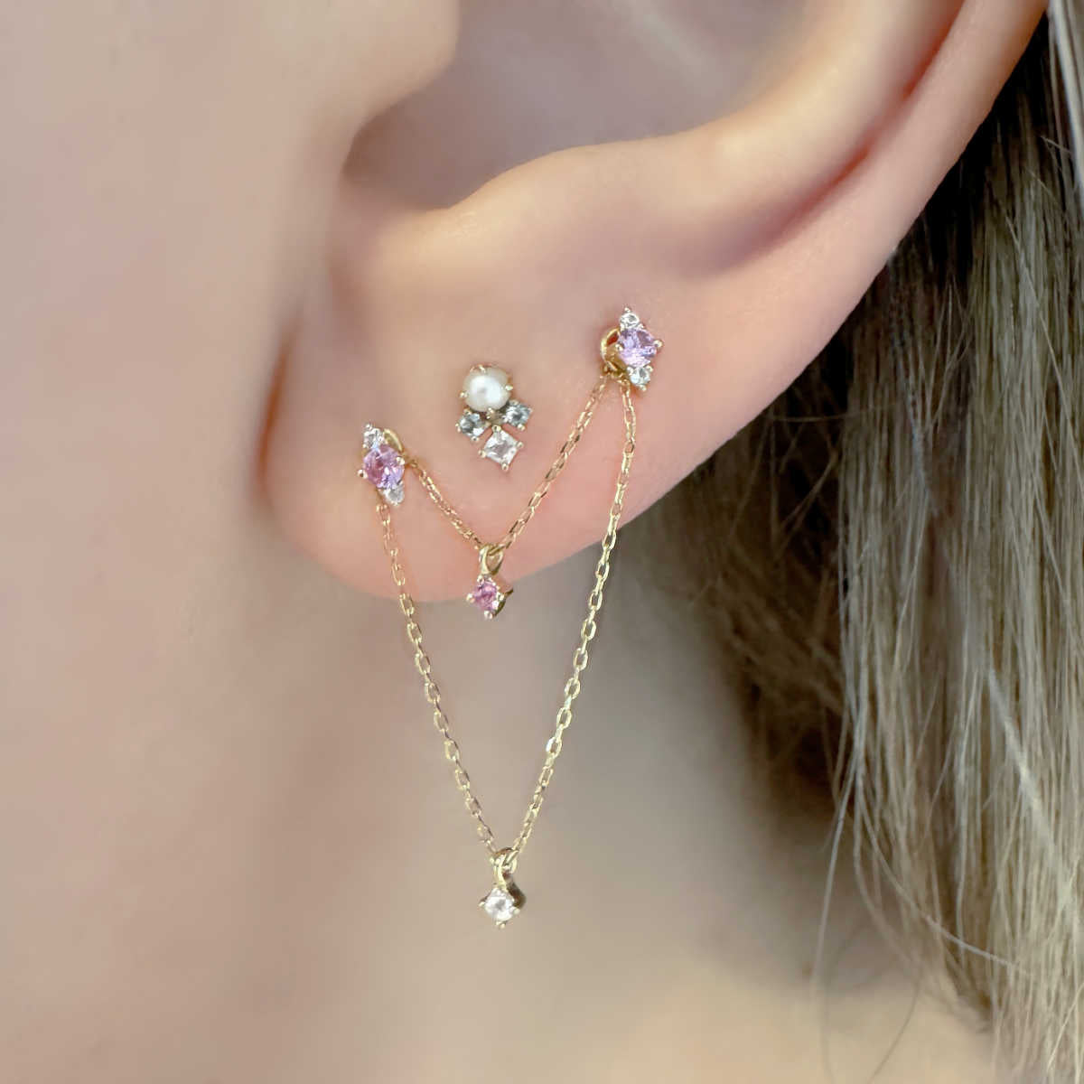 This petite, pretty piercing earring is all the rage! Featuring sparkling pink and white sapphire gemstones, our delicate stud is crafted in 14k solid gold, making it perfect for any special occasion. Whether it's a tragus, helix, or cartilage piercing - it's the perfect pick for the September birthstone or 5-year anniversary gem (woo-hoo!).