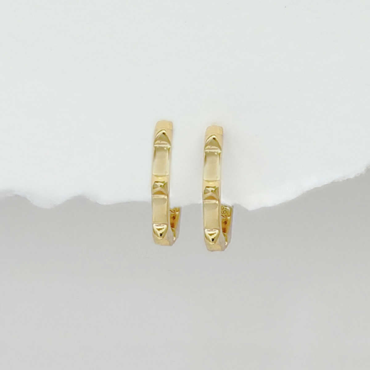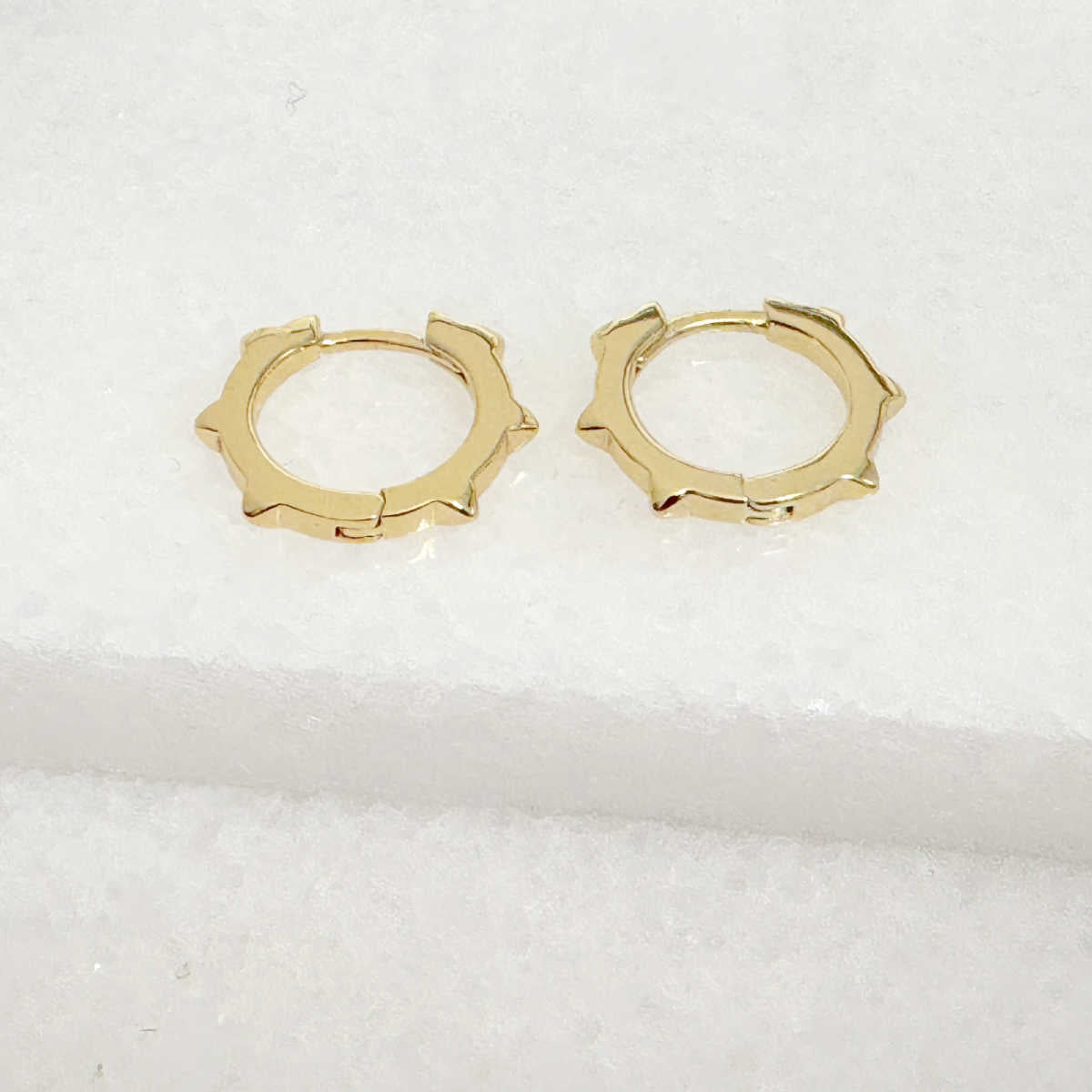 Add some attitude to your stack with our gold hoops featuring spikes! These petite huggie earrings are adorned with sharp details for a fierce and one-of-a-kind vibe. Crafted from hypoallergenic 14k gold plated sterling silver, they're ideal for sensitive ears, whether in your helix or your first or second lobe piercing.