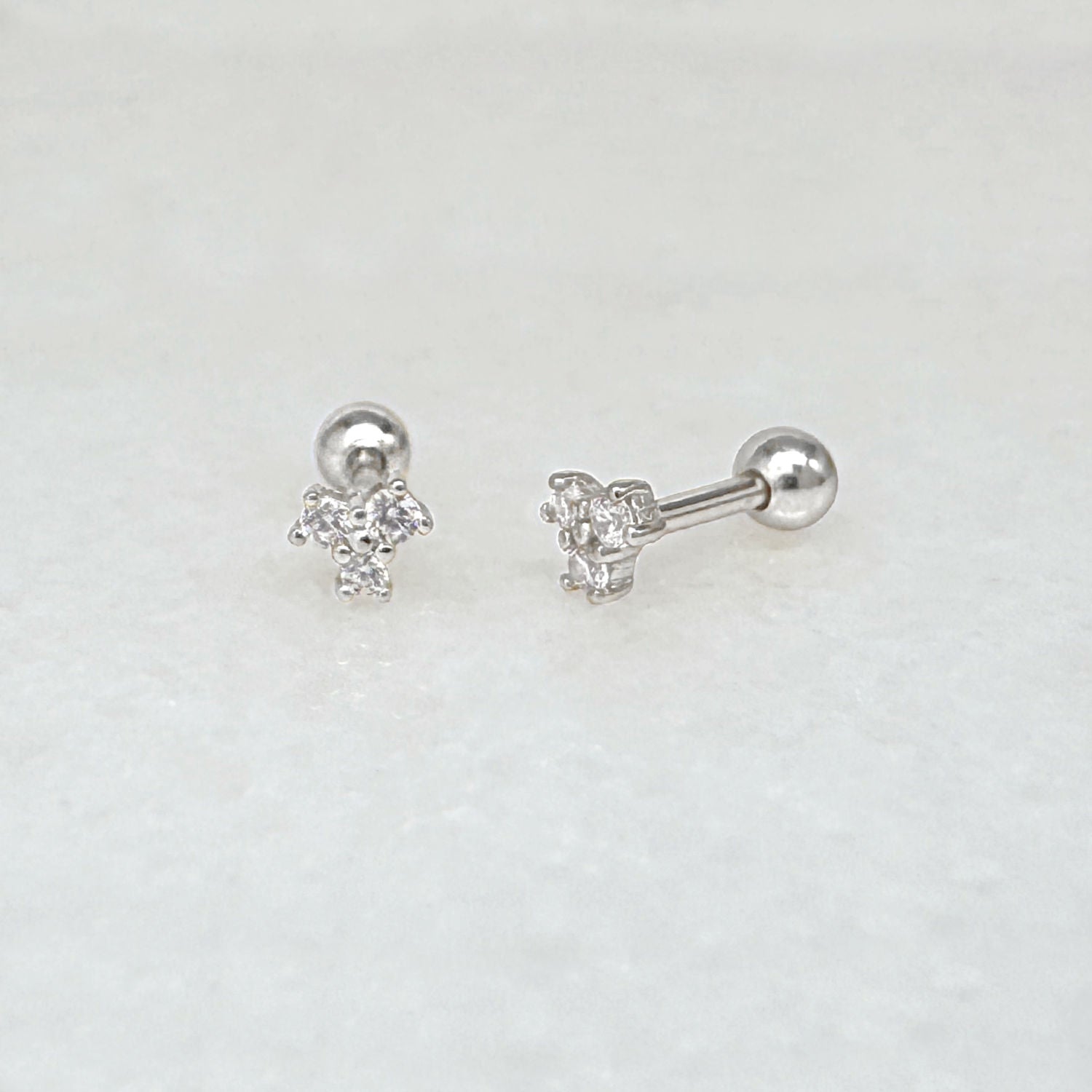 Introducing our classic 3-stone cluster earring with a sturdy ball screw back. Versatile for your lobe, helix, or conch, this stud in 925 sterling silver adds an elegant touch to any look.