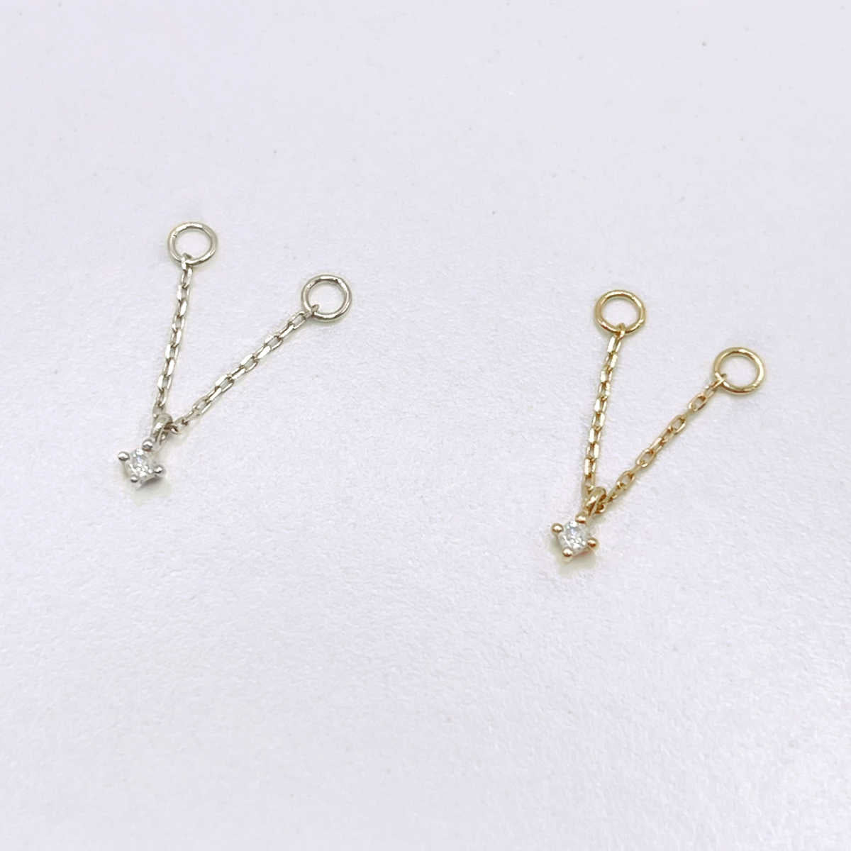 Let your lobes shine with our dazzling diamond-connected chain earring charm! 14K white gold is the perfect backdrop for a sparkling floating diamond, giving you a show-stopping glam look. Easily slide onto studs or thinner huggies for the best of both worlds: you can rock a single or double piercing and still be seriously stunning!
